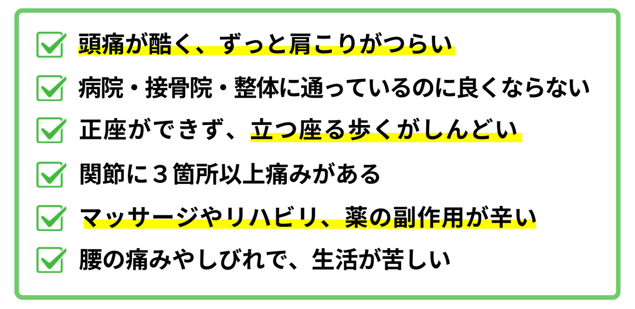 毎日悩まされるツライ症状、痛み、悩み、、、