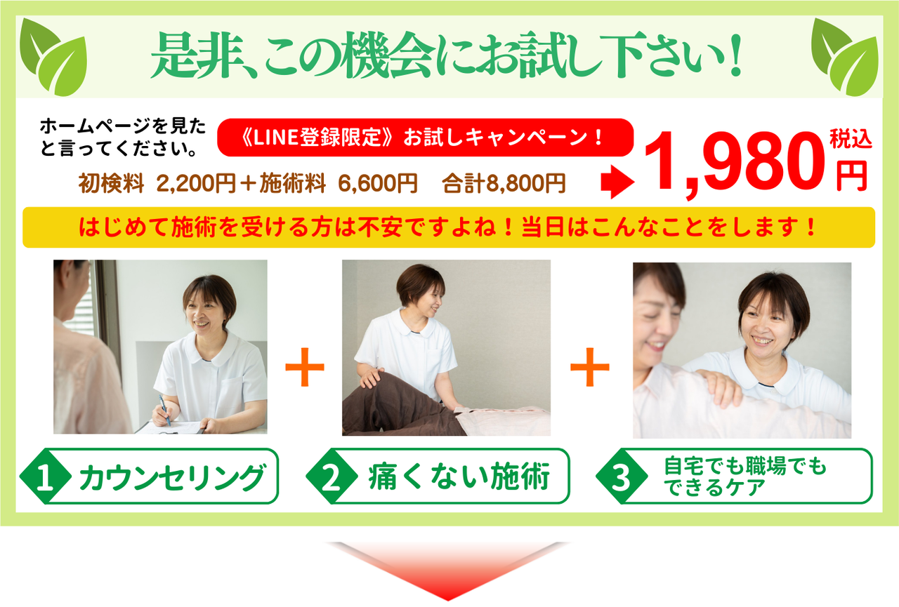 ソフトで安全な施術なのに効果が出るところが良かったです。